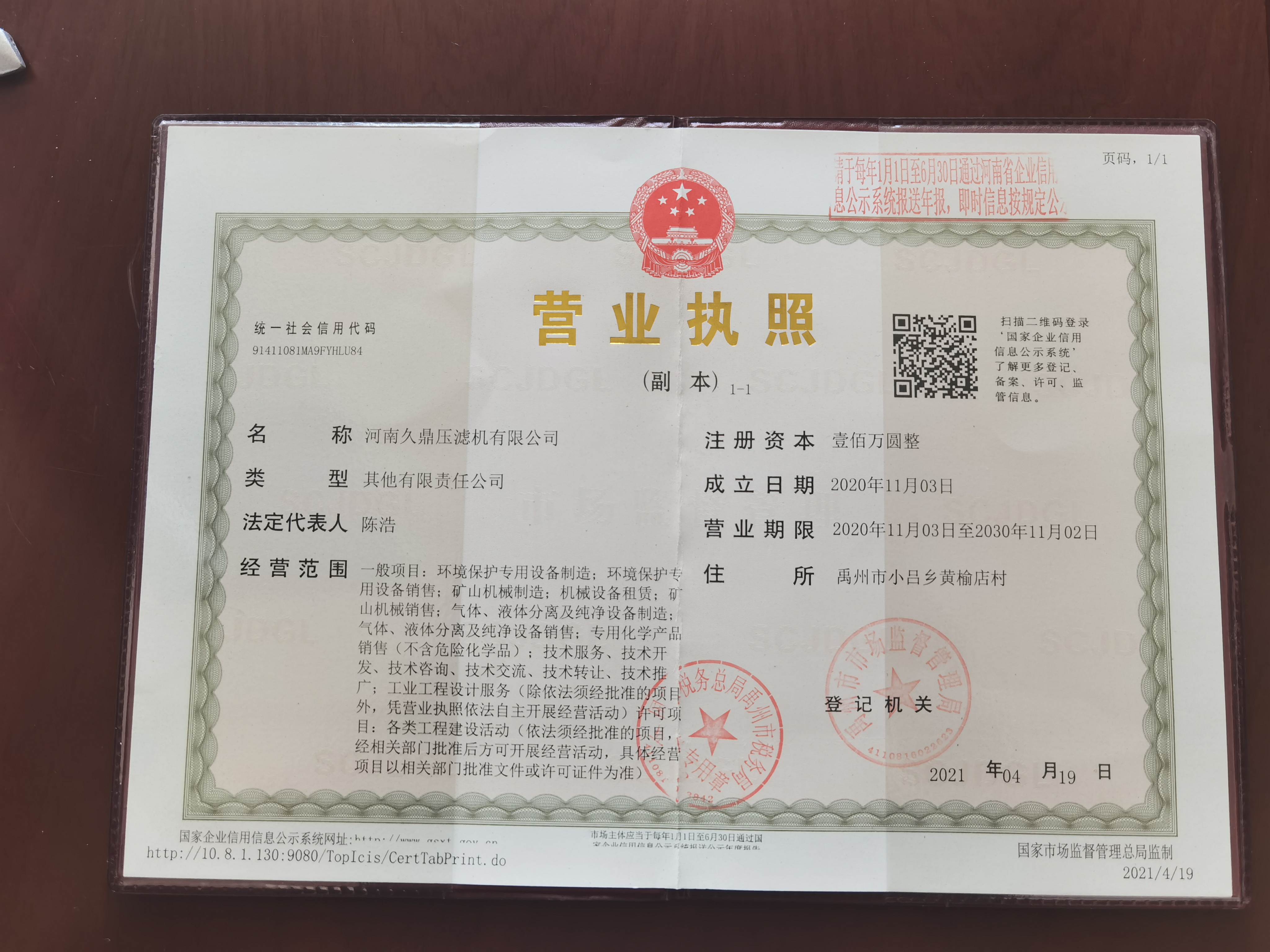 讓濾液更清、使濾餅更干、速度更快!——河南久鼎壓濾機有限公司,致力于壓濾機的研發與銷售,專注于污泥壓濾方案的研究及固液分離工程的設計、安裝。公司位于河南省禹州市禹州南高速口,熱銷產品有:車載式泥漿固化機、隔膜壓濾機、污泥壓干機及市政污泥、洗沙污泥處理的工程設計與安裝。