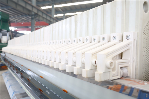 壓濾機在過濾過程中,濾布的毛細滲漏現象,濾板之間會有滴漏,這樣即對環境造成污染,又增加了壓濾機下面的儲泥斗中的泥料的含水率,給操作帶來很大麻煩。我公司設計的自動集液翻板系統可收集濾板滴漏的液體,避免壓濾機工作現場的污染,也避免了儲泥斗中的已脫水物料被浸潤。