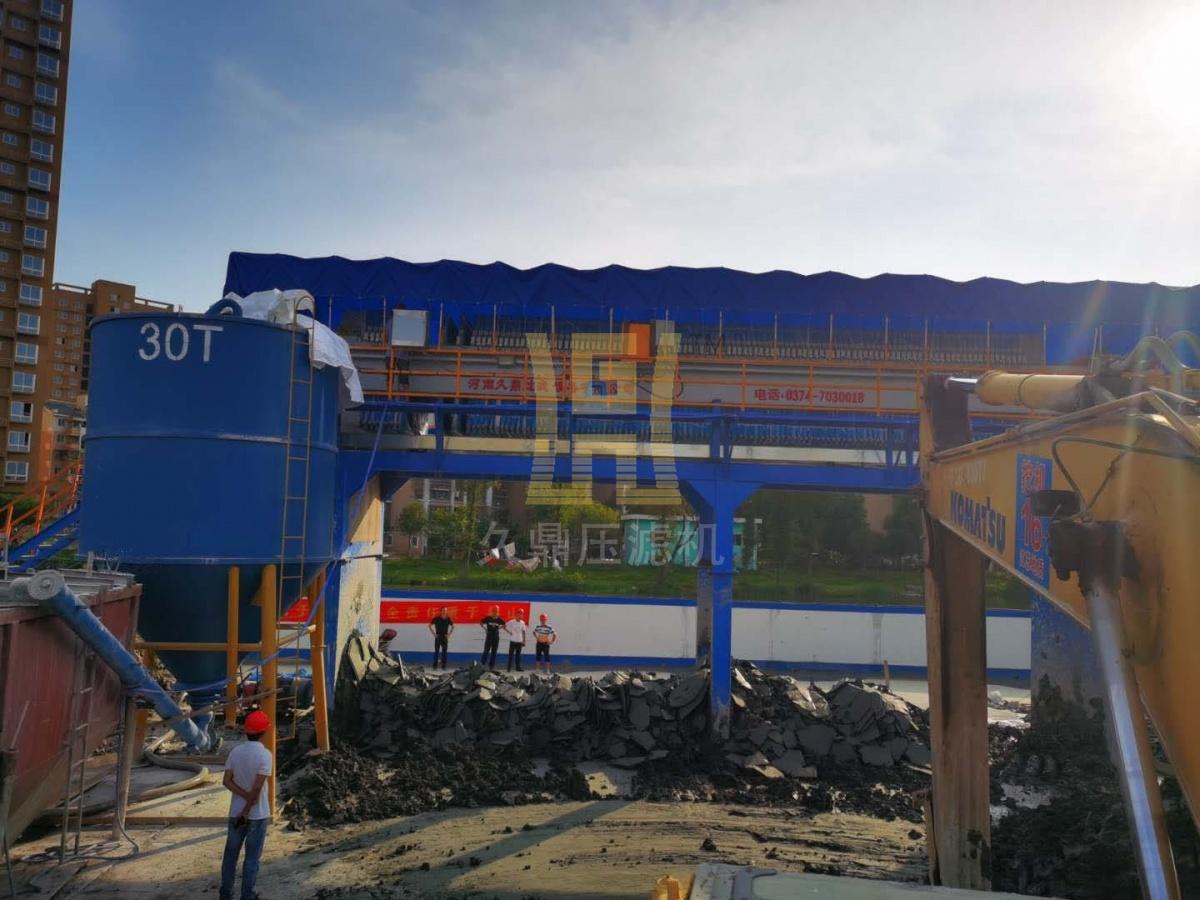 該機型由壓濾機、可拆卸式加高支腿、折疊操作平臺、可拆卸式雨棚、泥漿泵、泥漿混合攪拌罐、爬梯組成。我司研發的加強型設備(濾餅厚度45mm)在原有標準型設備(濾餅厚度35mm)的基礎上濾餅厚度增加了10mm,相比于同行業同型號的設備處理量提高了30%。該機型適用于打樁泥漿、河道清淤、盾構泥漿、尾礦泥漿等工程項目。設備特點:高效高能、轉場方便、模塊組裝、便于現場快速組裝及快速拆卸,是建筑工地、隧道施工、清淤等泥漿固化項目的首選設備。